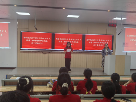 仪式上,周其其老师宣读了药学院2025年青马班学员名单,袁天浩、邹思怡等18名同学正式成为新一期青马班成员。这不仅是一份荣誉,更是一份责任,激励着他们在今后的学习与实践中发挥先锋模范作用。