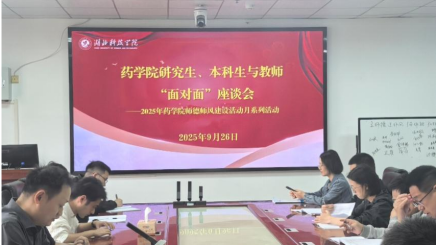 (通讯员:曾祥聪 审核人:陈清杰)9月26日上午,湖北科技学院药学院成功举办2025年师德师风建设活动月(强势能·提升育人水平)暨研究生、本科生与教师面对面座谈会,会上,研究生处张志鹏处长与药学院李炎坤书记、陈清杰副院长等20余名教师代表与40余名学生代表纷纷发言,展开深度交流。